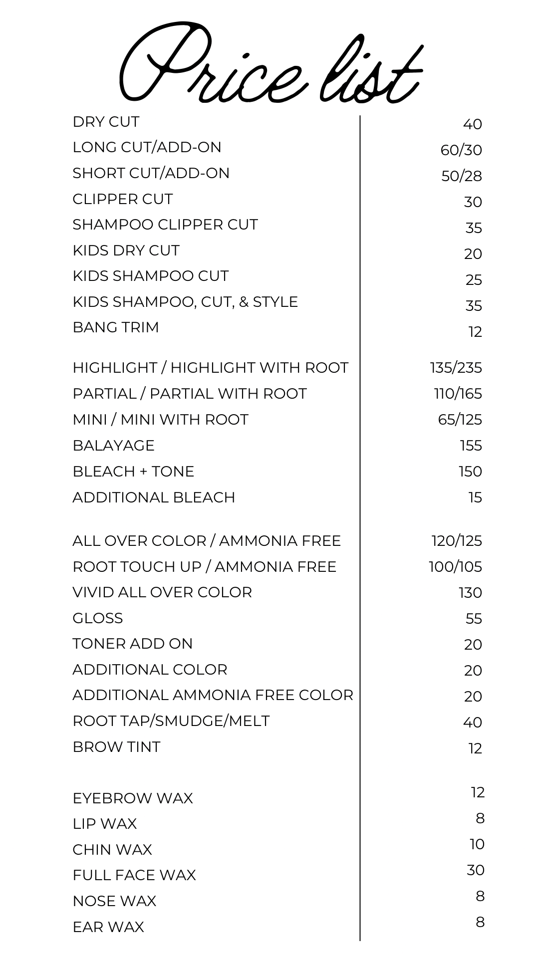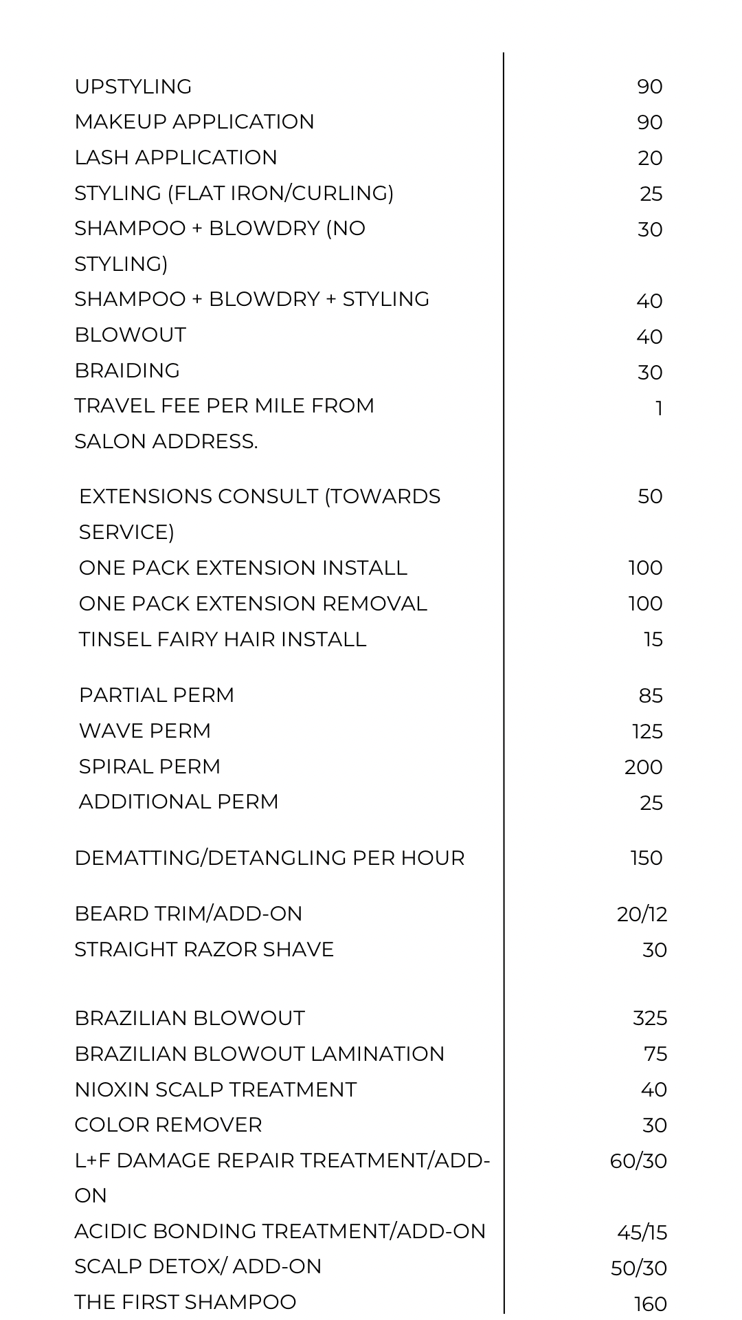 Your final price may vary depending on length, thickness, customization, etc. For a more accurate quote, we recommend telling your stylist your budget or scheduling a consultation before booking! Either way, we are ready to create the perfect look for you - no surprises!